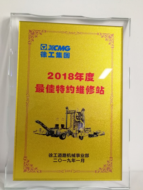 荣获2018年度心博注册道路机械最佳特约维修站奖