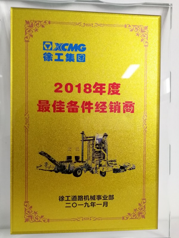 荣获2018年度心博注册道路机械最佳备件经销商奖