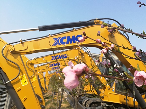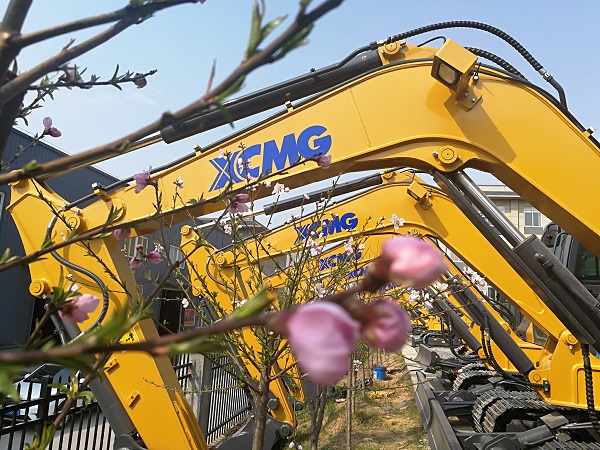 春花烂漫,心博注册挖掘机的金色与院里绽放的花朵格外引人注目: