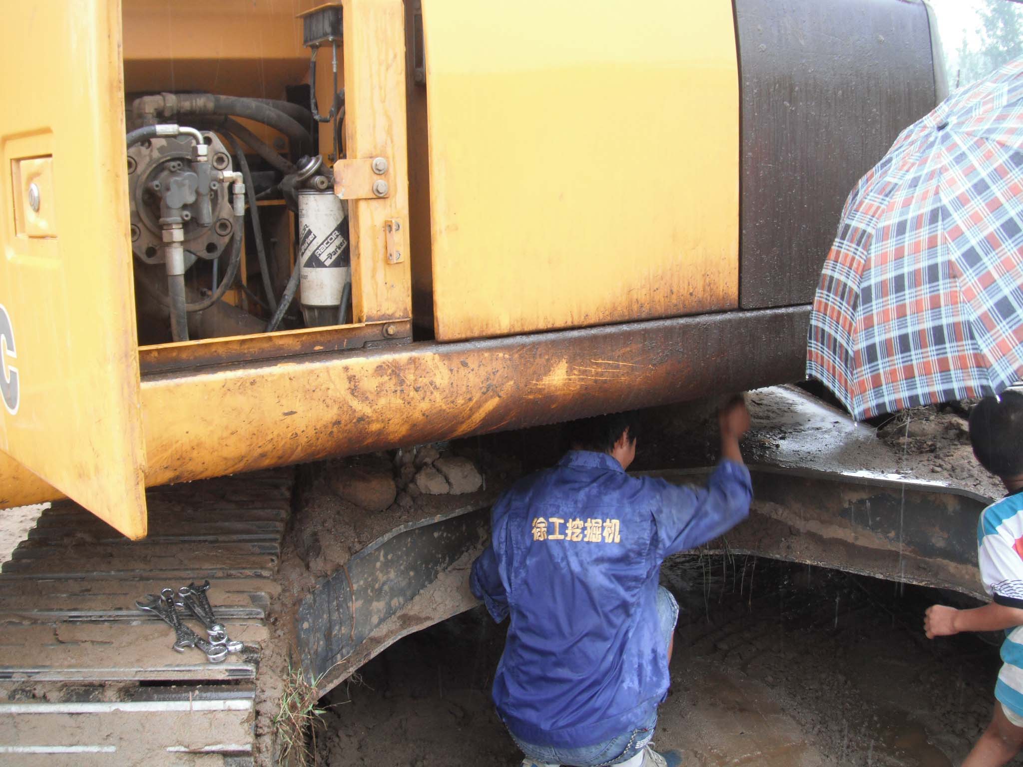 路友马师傅冒雨给客户的心博注册挖掘机做保养