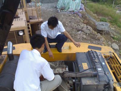 1) 将挖掘机表面的泥土清理干净,检查有无松动的紧固件。