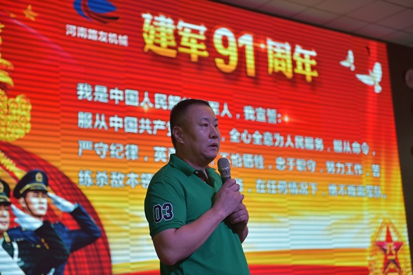 做为一名1989年的老兵,张总做为本次活动的代表发言:公司的军人虽然离开了部队,但部队的精气神依然体现,我们销售和服务每台心博注册车都是对国防事业的贡献。要把特别能忍耐,特别能吃苦,特别能战斗的精神继续传扬下去。为公司的建设和发展贡献自己的一份力量。