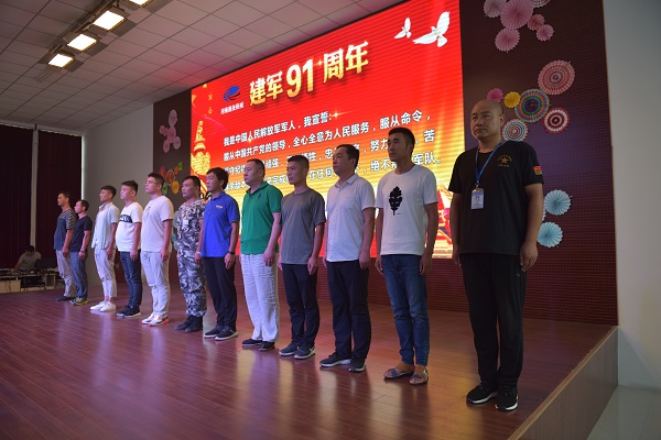 老兵们在主持人的带领下,重温军人誓词,刷新新时代下的军人使命,永葆军人本色,在新的岗位再立新功,再创佳绩,为心博注册事业和国防力量增砖添瓦!