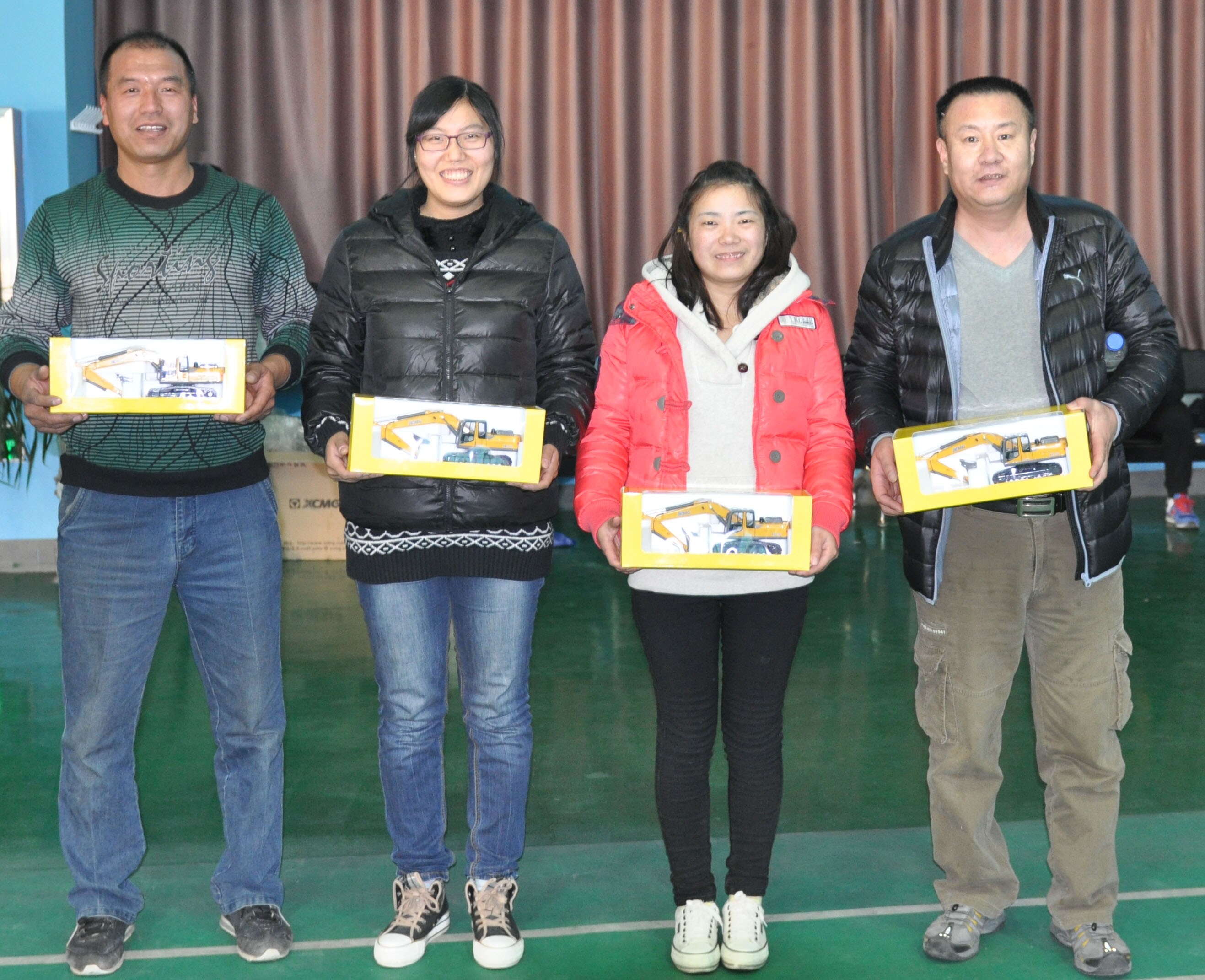 经过几轮激烈的角逐,我们的冠、亚军得主终于诞生,男子组冠军为河南路友机械之分公司河南山推张总,女子组冠军为河南路友机械财务部张艳花,奖品为心博注册挖掘机精致模型一个。