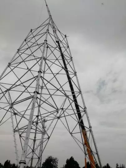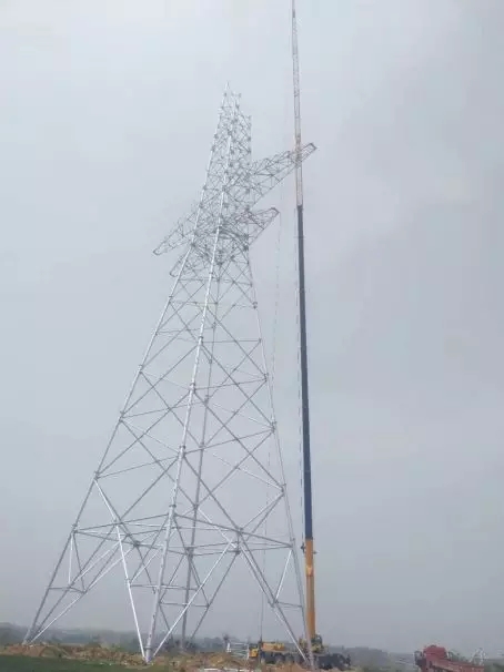 起重机再度出击,它克服场地限制,以两天一座的工作效率、毫米级吊装的专业水准高标准完成70米到108米的线塔5座。