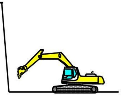 (1)挖掘机根部下方做挖掘作业的时候,尽量将车体靠近石堆边。