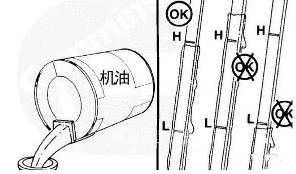 (1)每天检查机油的油位,可以准确掌握柴油机的工作状态,如果发现机油的油位低于或高于机油标尺的刻度范围(见图1),绝不允许起动柴油机。
