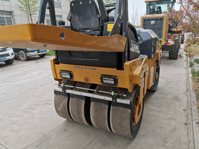 前钢轮利用自身分配质量及其激振装置产生的激振力,降低被压材料颗粒间的内摩擦力,使沥青材料与其他骨料充分渗透,路面耐磨性好;后胶轮利用充气轮胎的可变性,使轮胎与被压材料间保持一定的接触面,揉搓碾压,增加密水性,路面的表面颗粒外观均匀,使用寿命更长。